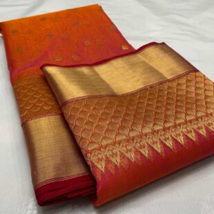 Chanderi Katan Silk Saree with Zari buties
