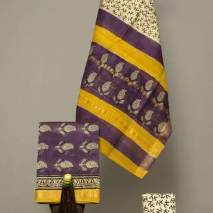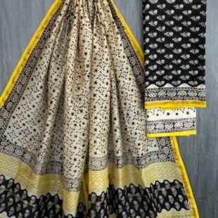 Chanderi Silk Bagru Print 3 piece Unstitched Suits.