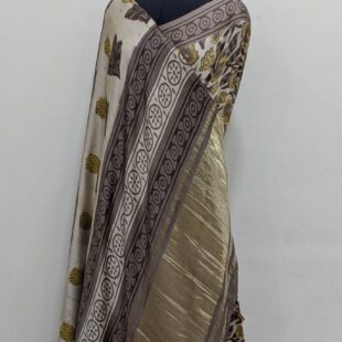 Modal Silk Ajrakh Print Saree with Zari Pallu