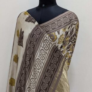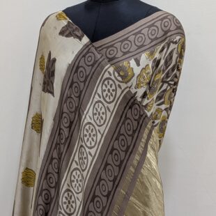Modal Silk Ajrakh Print Saree with Zari Pallu