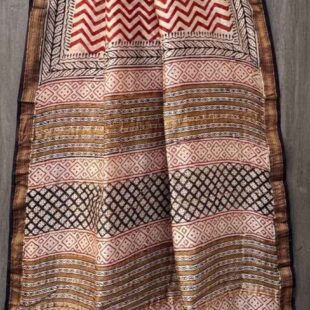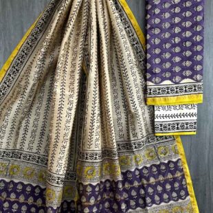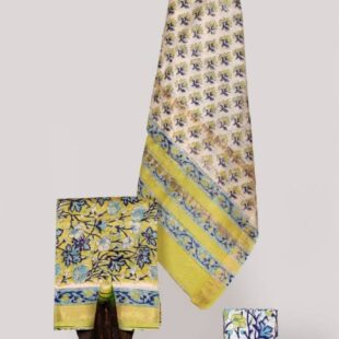 Chanderi Silk Bagru Print 3 piece Unstitched Suits.