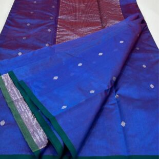 Handwoven Royal Blue Chanderi Pattu Saree with piping border