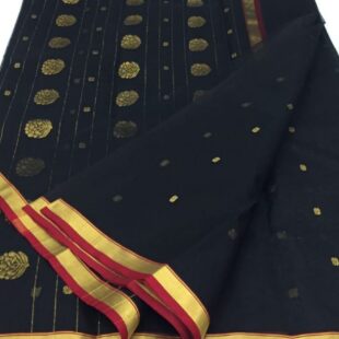 Black Chanderi Katan Silk Saree with Zari buties