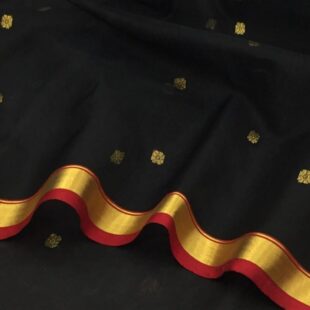 Black Chanderi Katan Silk Saree with Zari buties