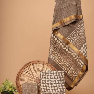 Chanderi Silk Bagru Print 3 piece Unstitched Suits.