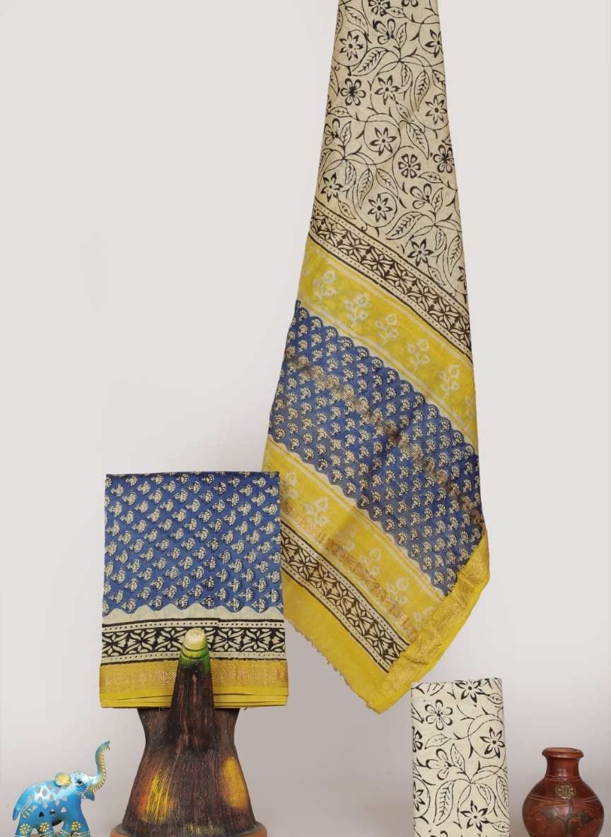 Bagru Print Maheshwari 3 piece Unstitched Suits