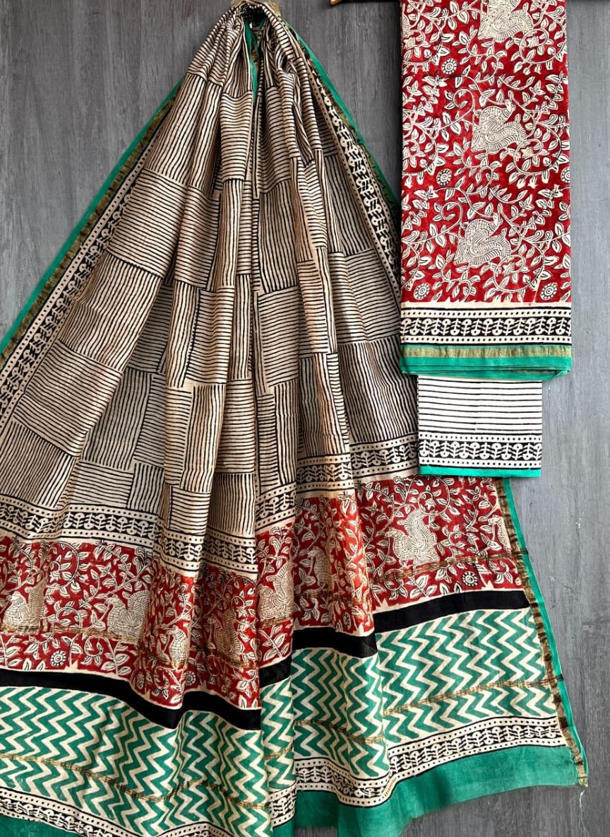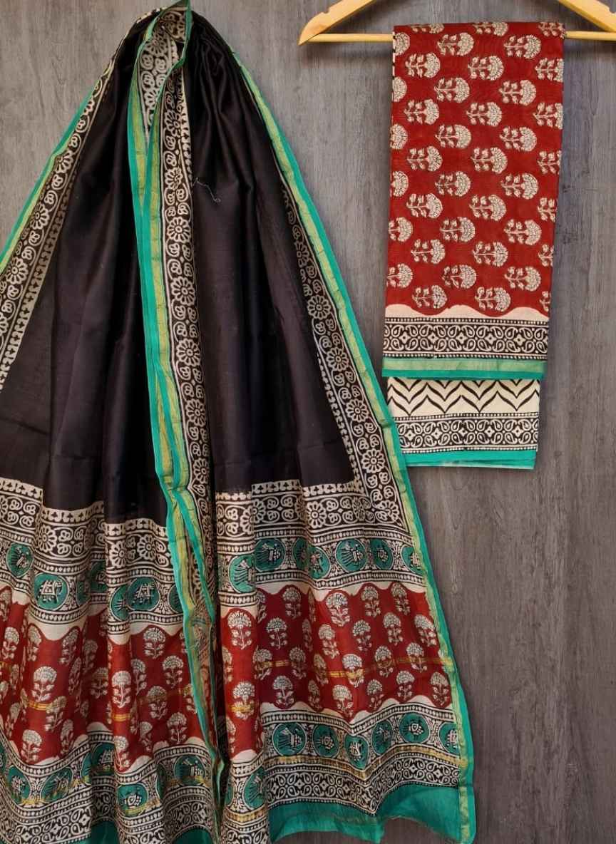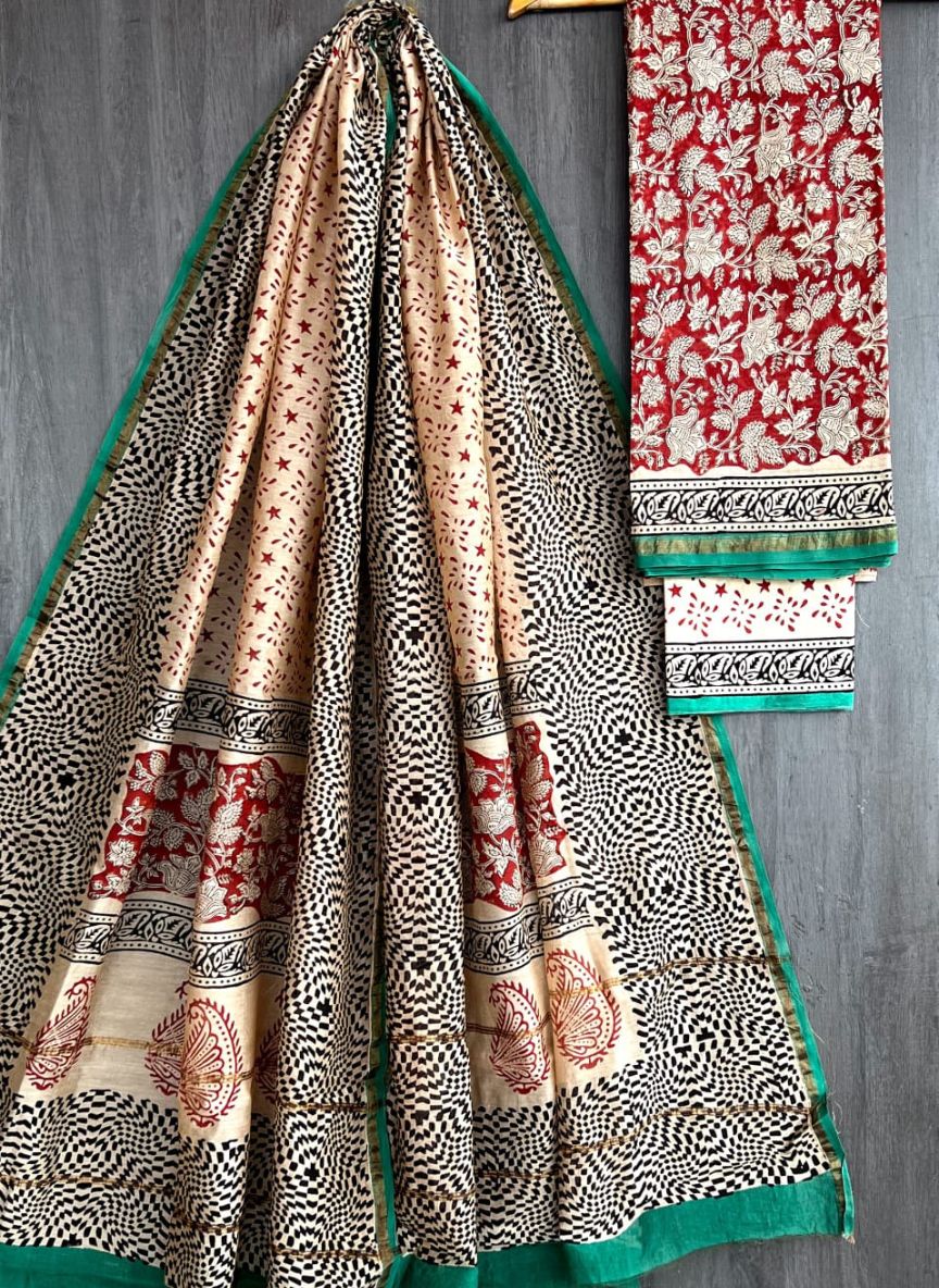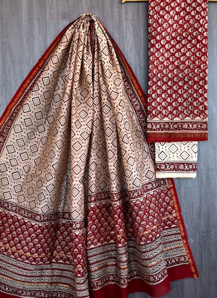 Chanderi Silk Bagru Print 3 piece Unstitched Suits.
