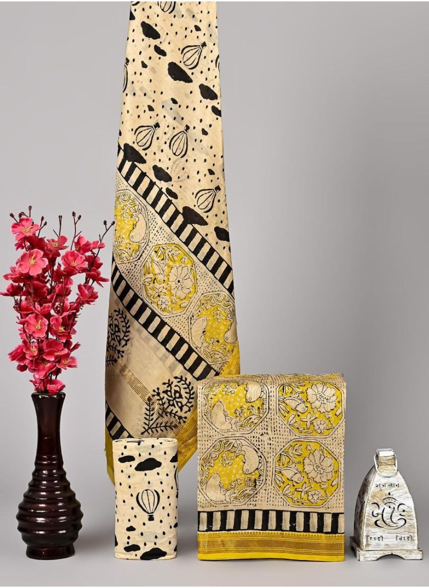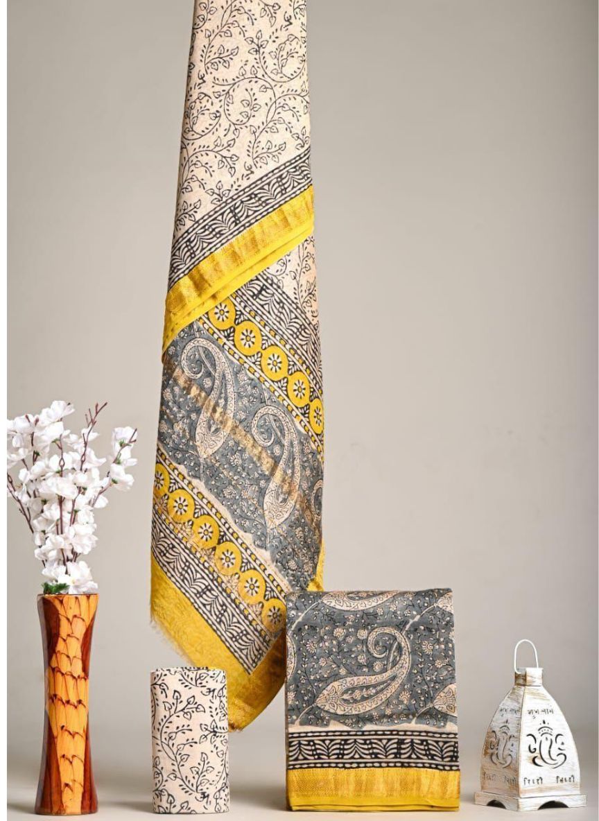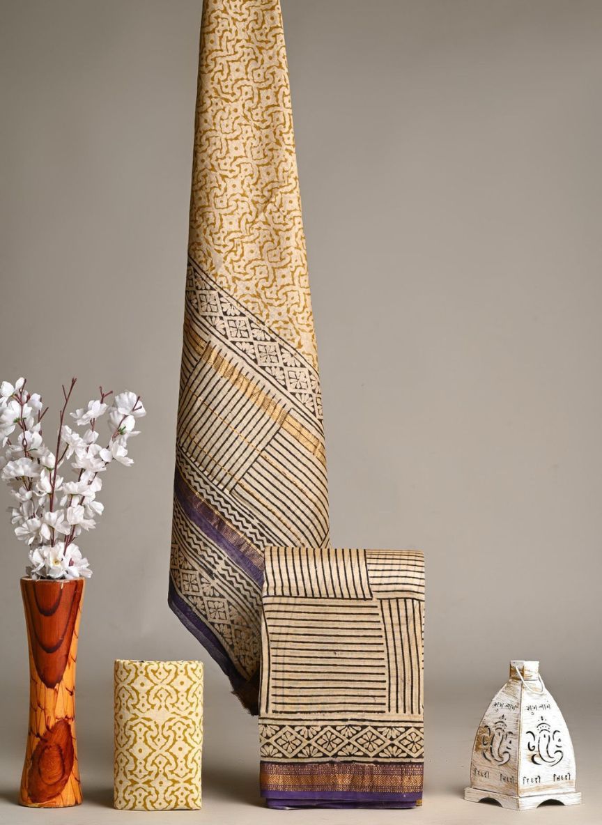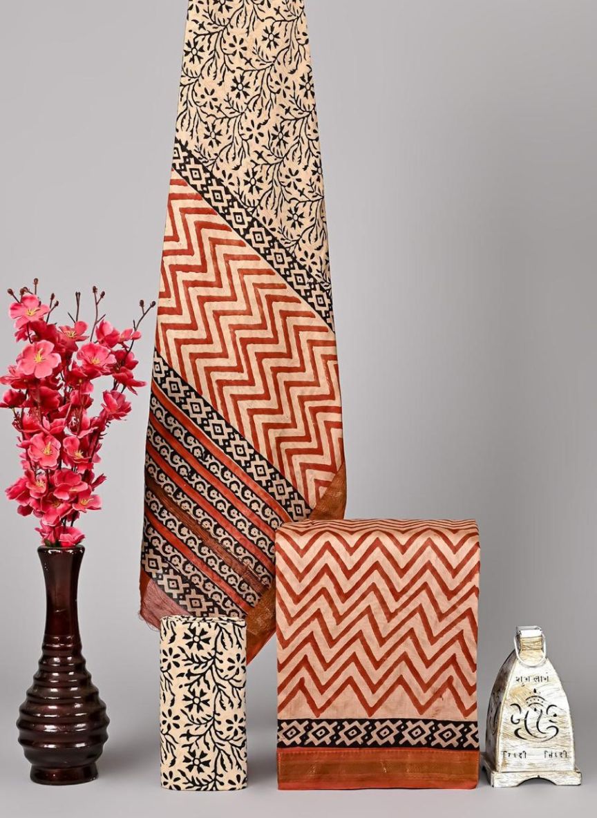 Maheshwari Hand Block Printed 3 piece Unstitched Suits